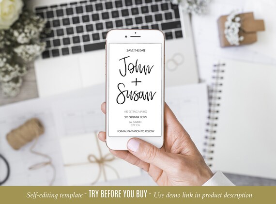 Modern Save The Date Electronic Template Digital Wedding Etsy