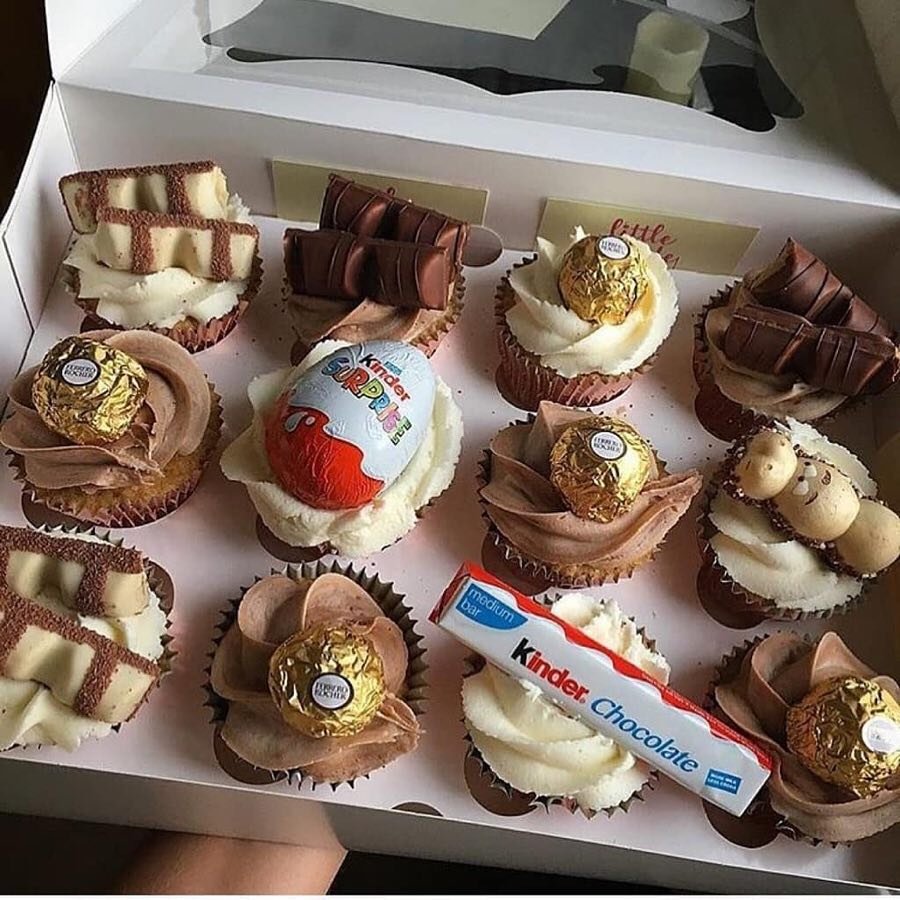 – Kinder Bueno – Chocolate Sprinkles Method 1) Preheat your oven to 170C/160CFan and Line a 12 Hole Muffin Tray with Large Cupcake Cases/Muffin Cases 2) Cream together the Butter and Light Brown Sugar with an electric beater till smooth – add in the Eggs, Flour, Cocoa Powder, Sweet Hazelnut & Chocolate Flavouring, and beat again till. 1 Preheat your oven to 180 degrees and place 12 Cupcake Liners into a Cupcake pan To make the white chocolate sponge, first mix together the Butter, Sugar, Eggs and Cream / Milk until well combined 2. 8 · 50 minutes · Chocolate cupcakes topped with Nutella buttercream and a Kinder Bueno piece Recipe by The Baking Explorer 38k 11 ingredients Refrigerated 3 Eggs, large Condiments 0 g Nutella Baking & spices 1/4 tsp Baking powder 175 g Caster sugar 1 Chocolate sprinkles 25 g Cocoa powder 300 g Icing sugar 150 g Self raising.