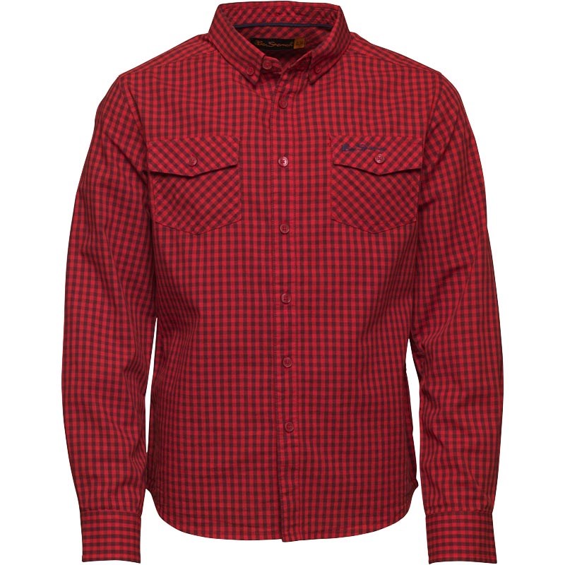 Ben Sherman Jungen House Karo Poplin Hemd Mit Langem Arm Rot Kariert