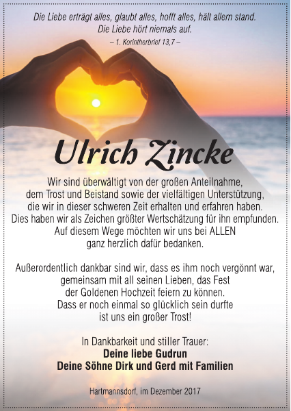 Ulrich Zincke Danksagung Sachsische Zeitung