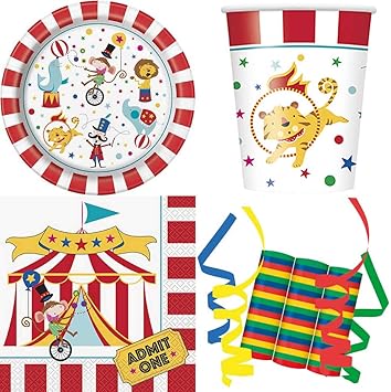 Jt Lizenzen Lustiger Zirkus 51 Teiliges Kindergeburtstag Party Deko Set Motto Fete Feier 16 Teller 16 Becher 16 Servietten 3 Rollen Luftschlangen Amazon De Spielzeug