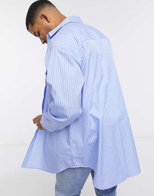 Asos Design Super Oversized Blue And White Stripe Shirt Asos
