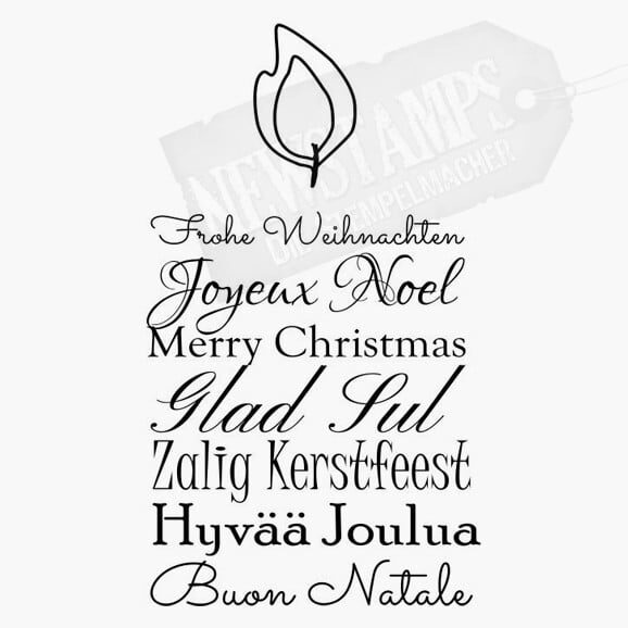Frohe Weihnachten 4 Sprachen Stempel Motivstempel Holzstempel