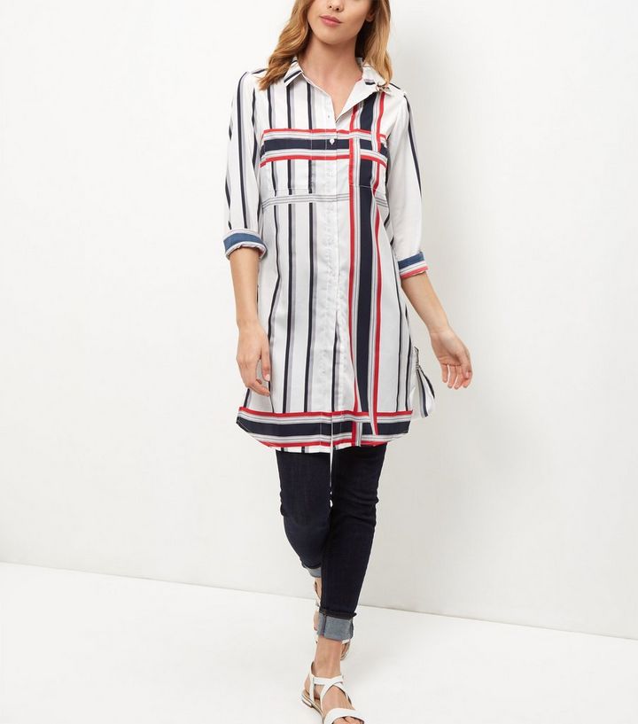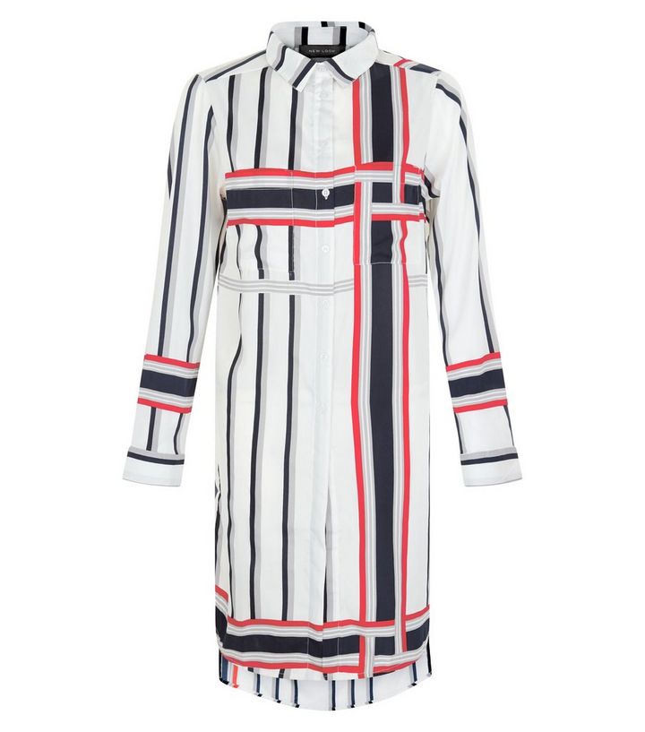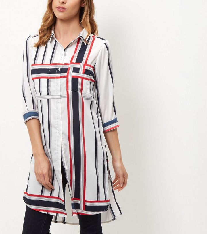 Lang Geschnittenes Weisses Hemd Mit Kontraststreifen New Look