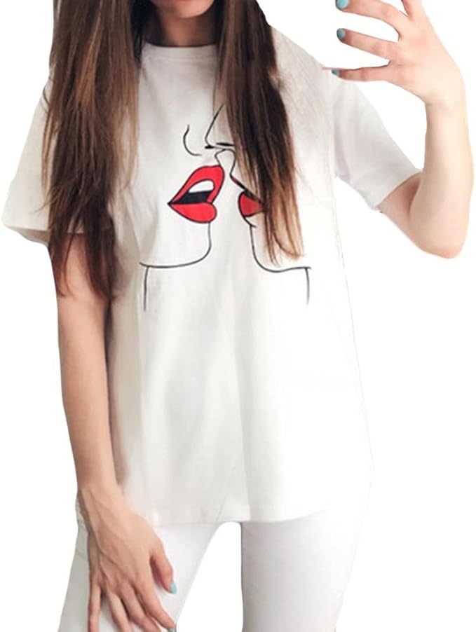 Huihong Damen T Shirt Sommer Mode Casual Lippen Drucken Weisse T Shirt Kurzarm Teenager Bluse Oberteile Weiss Xl Amazon De Bekleidung