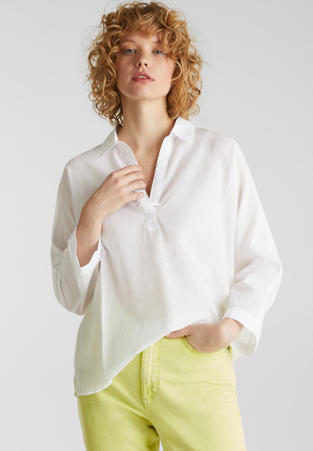 Edc By Esprit Leicht Transparente Hemdbluse Bluse White Weiss Zalando De