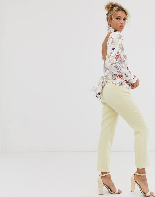 Frauenhemd Gelbe Ruckenfreie Ruschen Schnuren U Ausschnitt Lassig Armellose Polyester Oberteile Milanoo Com