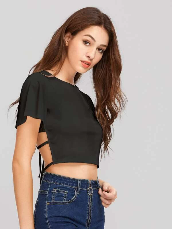 Ruckenfreies Crop T Shirt Mit Schnuren Aktuelle Trends Gunstig Kaufen Shein Deutschland