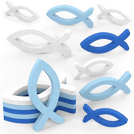 Foccts 108 Stucke Deko Fisch Holz Fische Streudeko Taufe Deko Taufe Junge Tischdeko Taufe Konfirmation Kommunion Dekoration Zeremonielle Deko Kuche Haushalt Wohnen