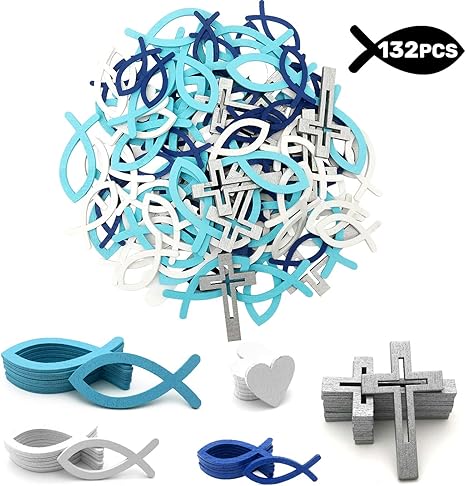 132stck Holzfische Streudeko Tischdeko Zur Taufe Konfirmation Kommunion Junge 108 Holz Fische 12 Kreuz 12 Herz Dekoration Amazon De Kuche Haushalt