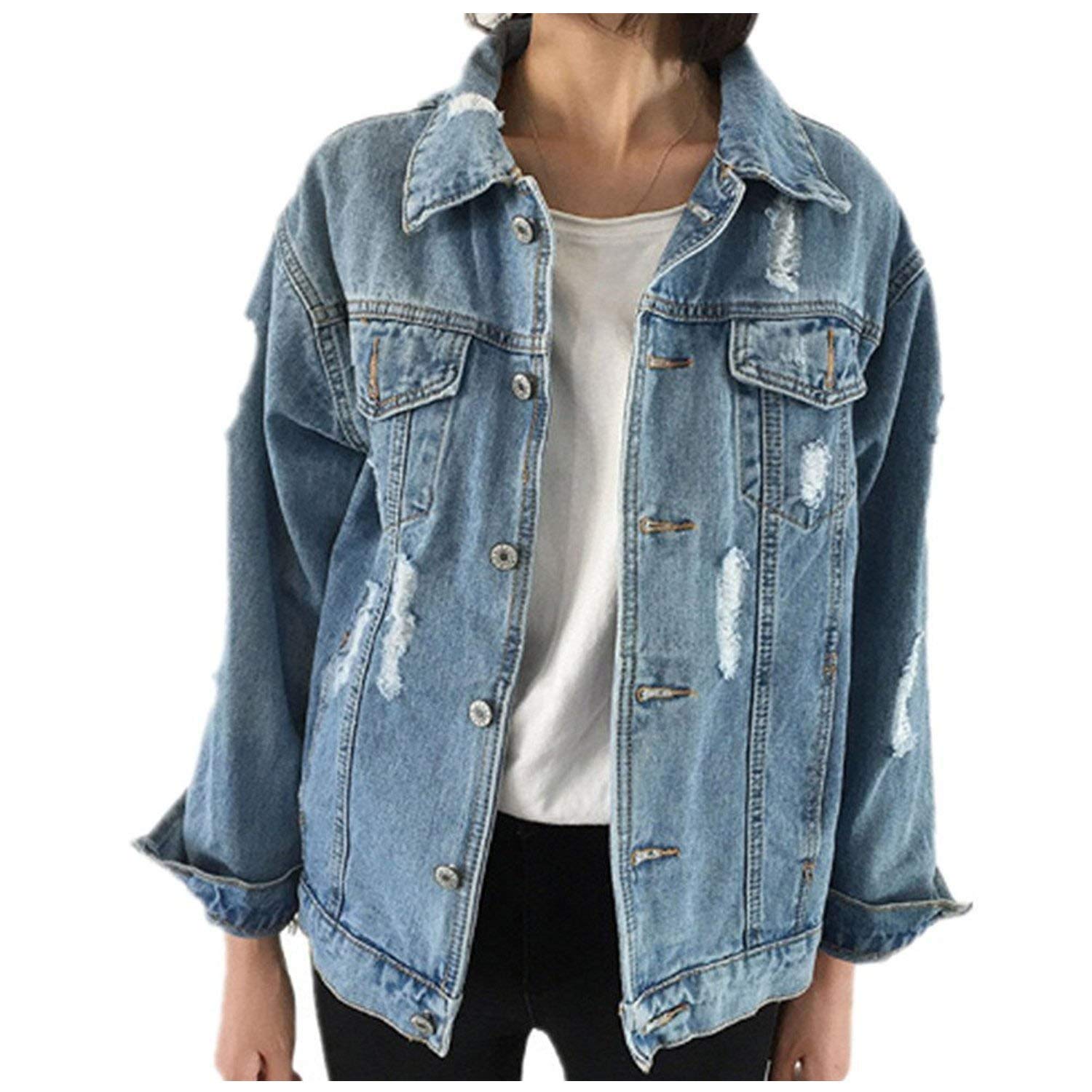 Damen Women Autumn Winter Denim Upset Jacket Vintage Long Sleeve Loose Jeans Coat New Kleidung Accessoires Thelanguagemall Org