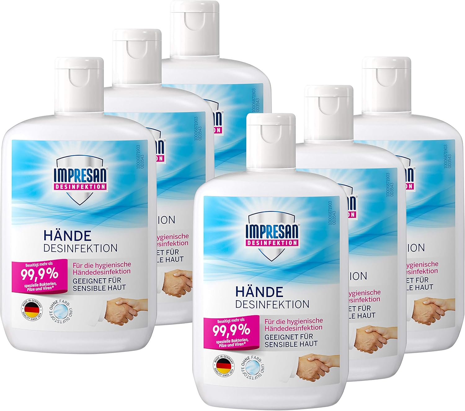 Impresan Hande Desinfektion Flussiges Desinfektionsmittel Hygienische Handdesinfektion 6 X 150ml Im Praktischen Vorteilspack Amazon De Drogerie Korperpflege