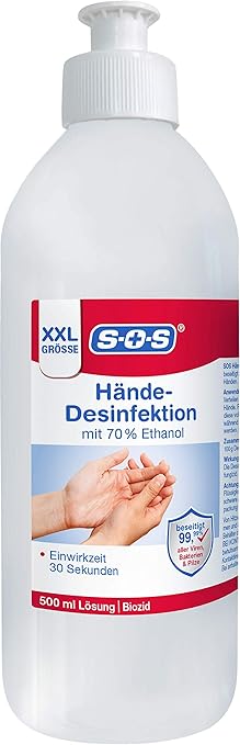 Sos Hande Desinfektion Desinfektionsmittel Aus 70 Ethanol Fur Die Hande Handdesinfektion Zur Zuverlassigen Beseitigung Von Viren Bakterien Und Pilzen Von Den Handen 1 X 500 Ml Amazon De Drogerie Korperpflege