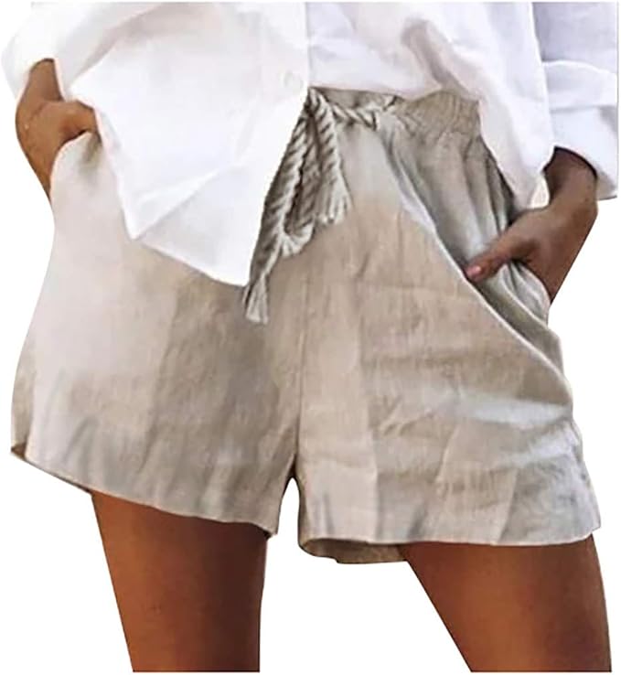 Lulupi Damen Leinen Bermuda Shorts Leicht Kurze Hose Tunnelzug Locker Leinenhose Baumwollhose Sommer Strandshorts Weite Lassig Einfarbig Freizeithose Paperbag Amazon De Bekleidung