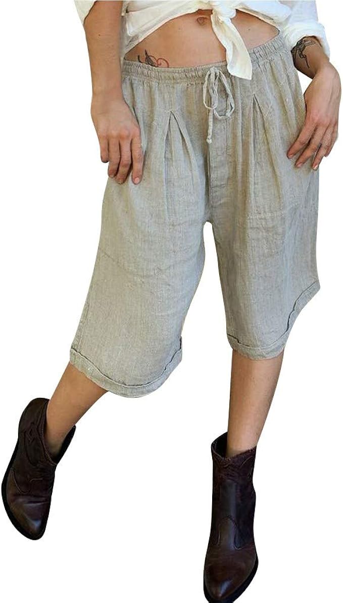 Lulupi Damen Leinen Bermuda Retro Shorts Baumwolle Kurze Hose Tunnelzug Straight Fit Strandhose Leinenhose Leicht Weite Bein Sommerhose Freizeithose Amazon De Bekleidung