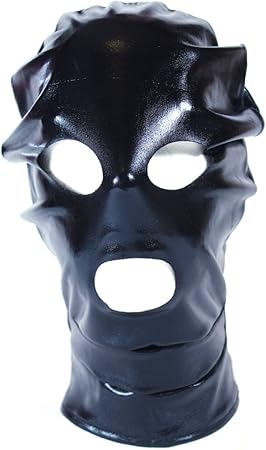 Amazon De Bondage Lack Stoff Maske Mit Augen Mund Offnung Und Reissverschluss