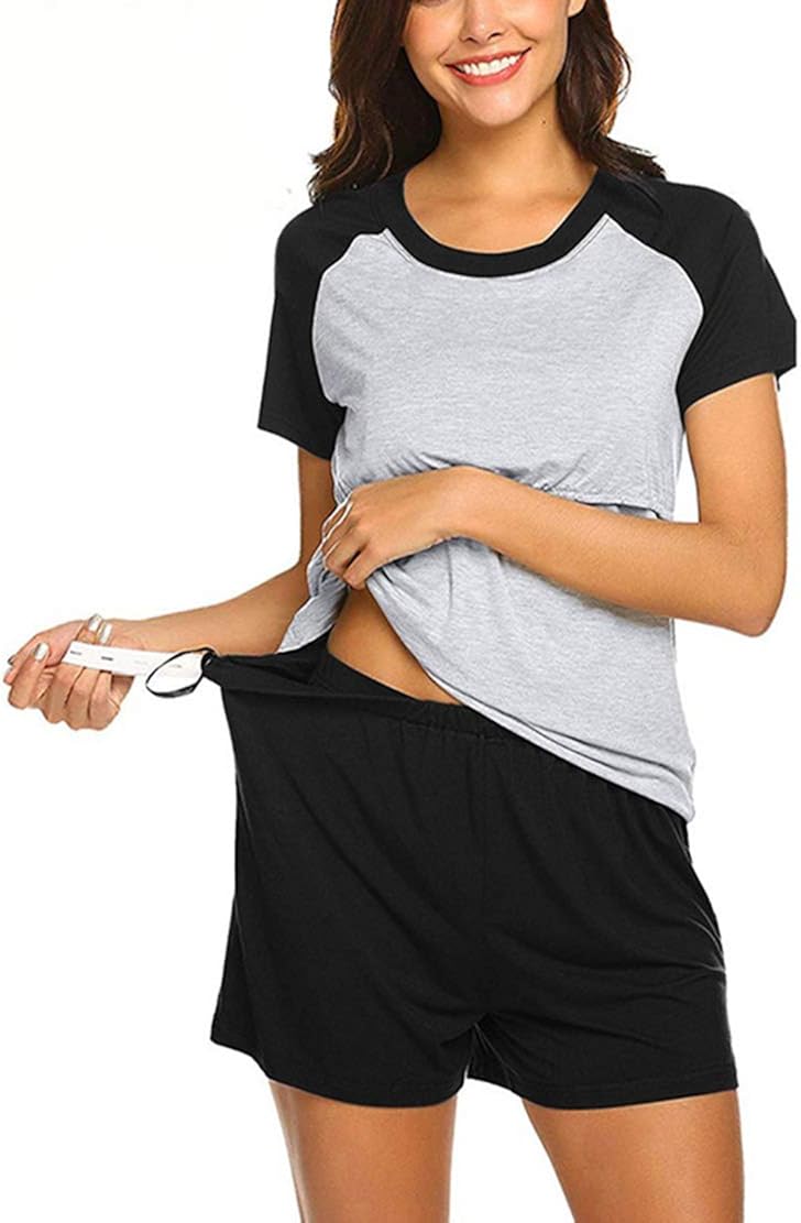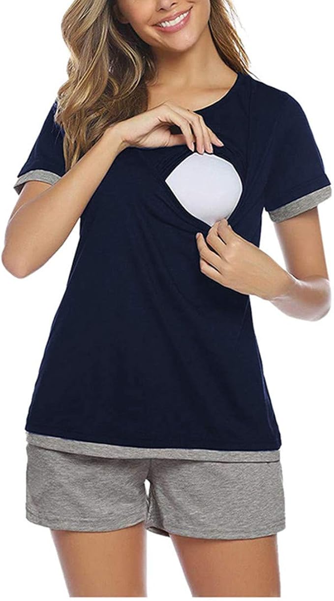 Nachtwasche Umstandspyjama Stillfunktion Still Schlafanzug Damen Sommer Stillshirt Umstandsmode Hose Kurz Schwangerschaft Pyjama Set Lagendesign Wickeln Schicht Baby Luxdental Si