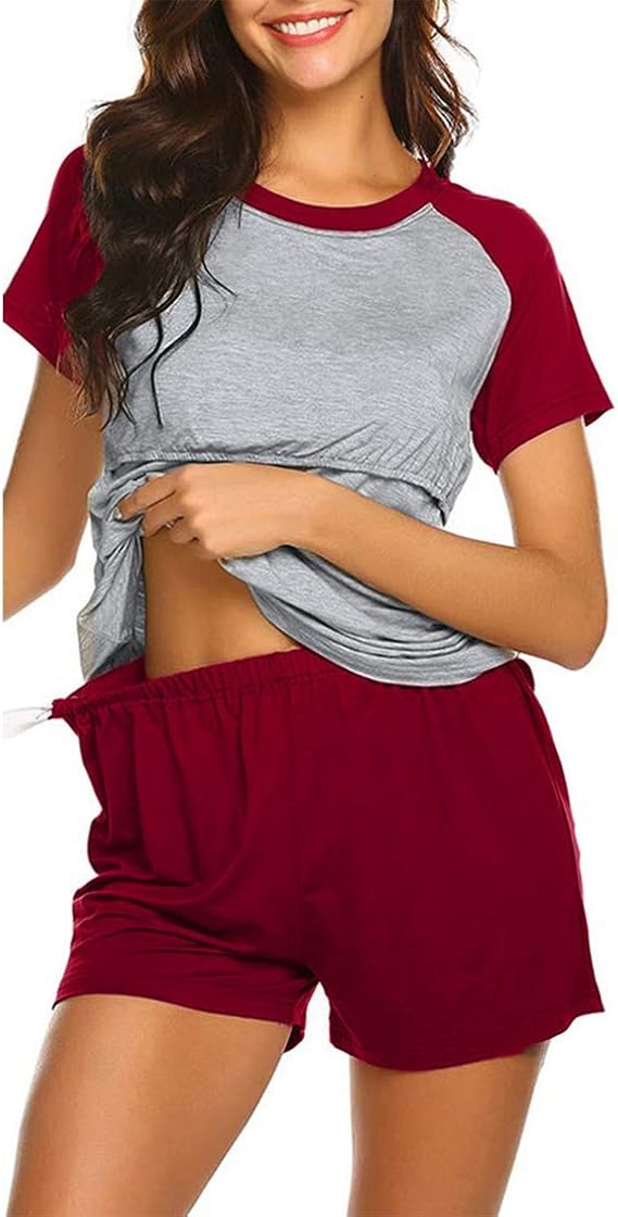 Nachtwasche Umstandspyjama Stillfunktion Still Schlafanzug Damen Sommer Stillshirt Umstandsmode Hose Kurz Schwangerschaft Pyjama Set Lagendesign Wickeln Schicht Bekleidung Luxdental Si