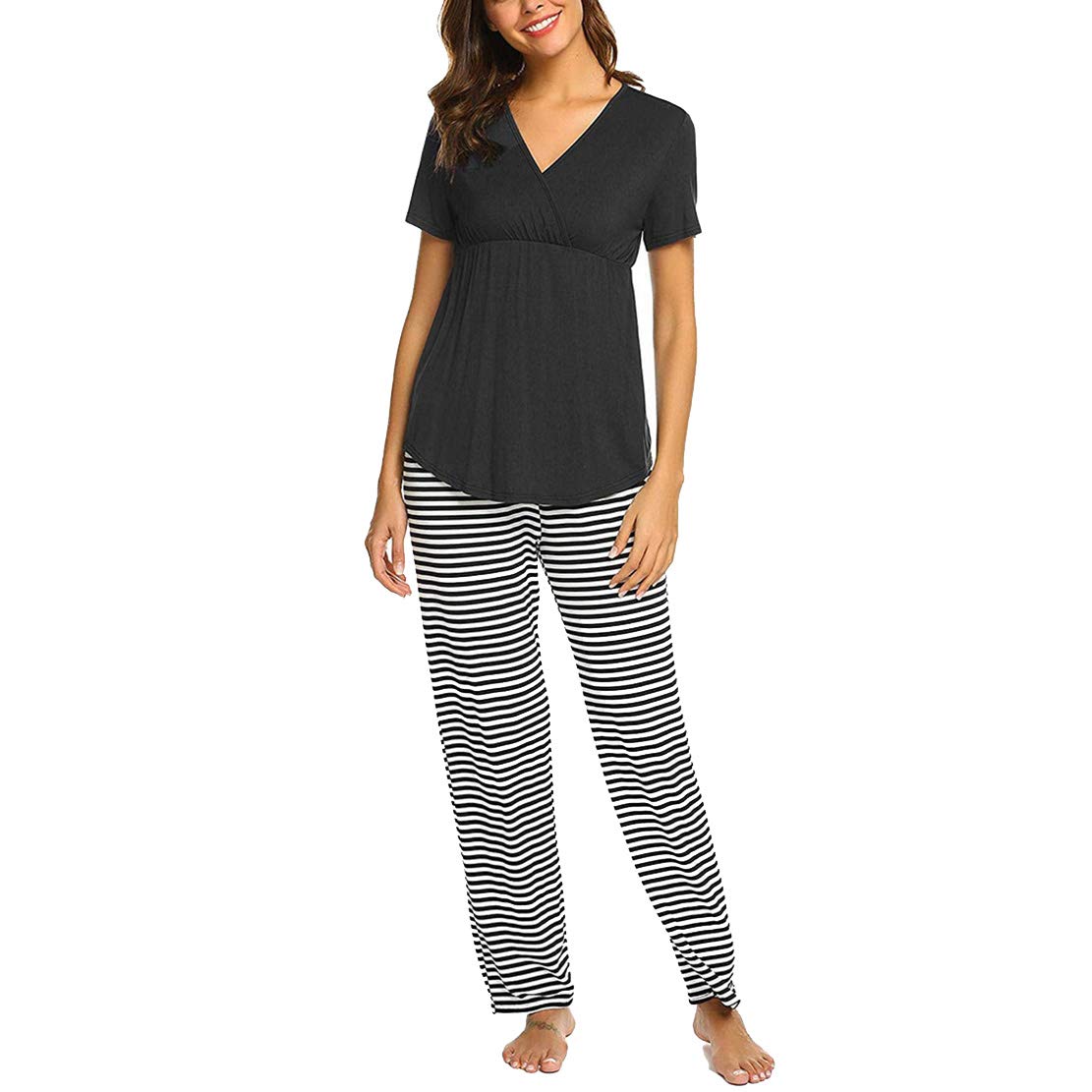 Damen Nachtwasche Gunstige Umstandsmode Einstellbare Gestreifte Shorts Pyjama Set Ucoolcc Schwangere Frauen Kurzarmelige Gestreifte Farbe Passend Zum Still Top T Shirt Umstandskleidung Bekleidung