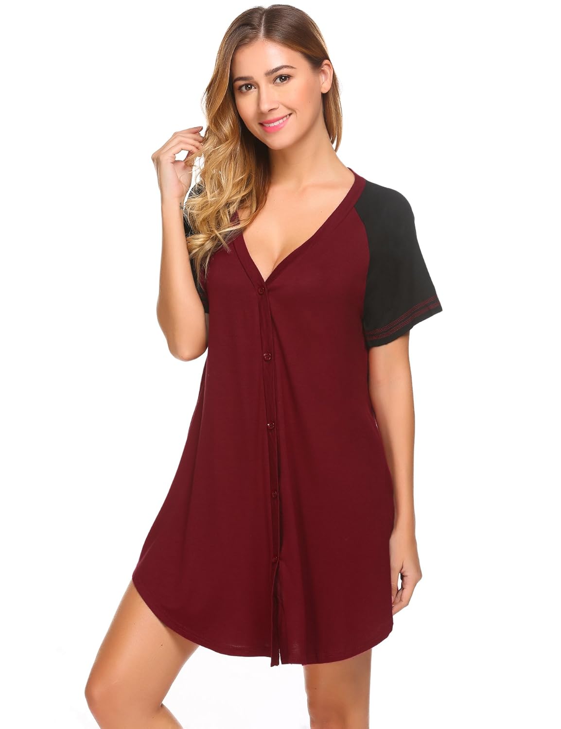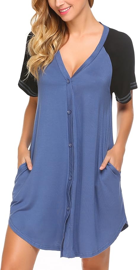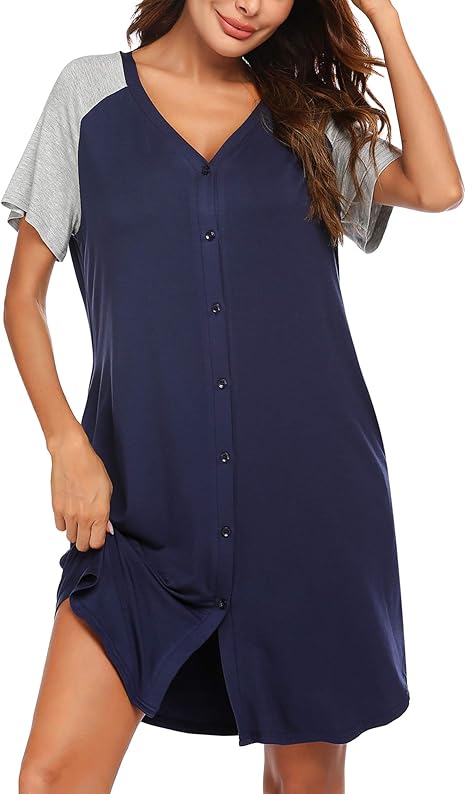Adome Still Nachthemd Damen Geburt Stillnachthemd Mutterschaft Schwangerschaft Umstandsnachthemd Nachtwasche Kurz Umstandsmode Tunika Mit Durchgehender Knopfleiste Geburtshemd Fur Schwangere Damen Nachtwasche Bademantel