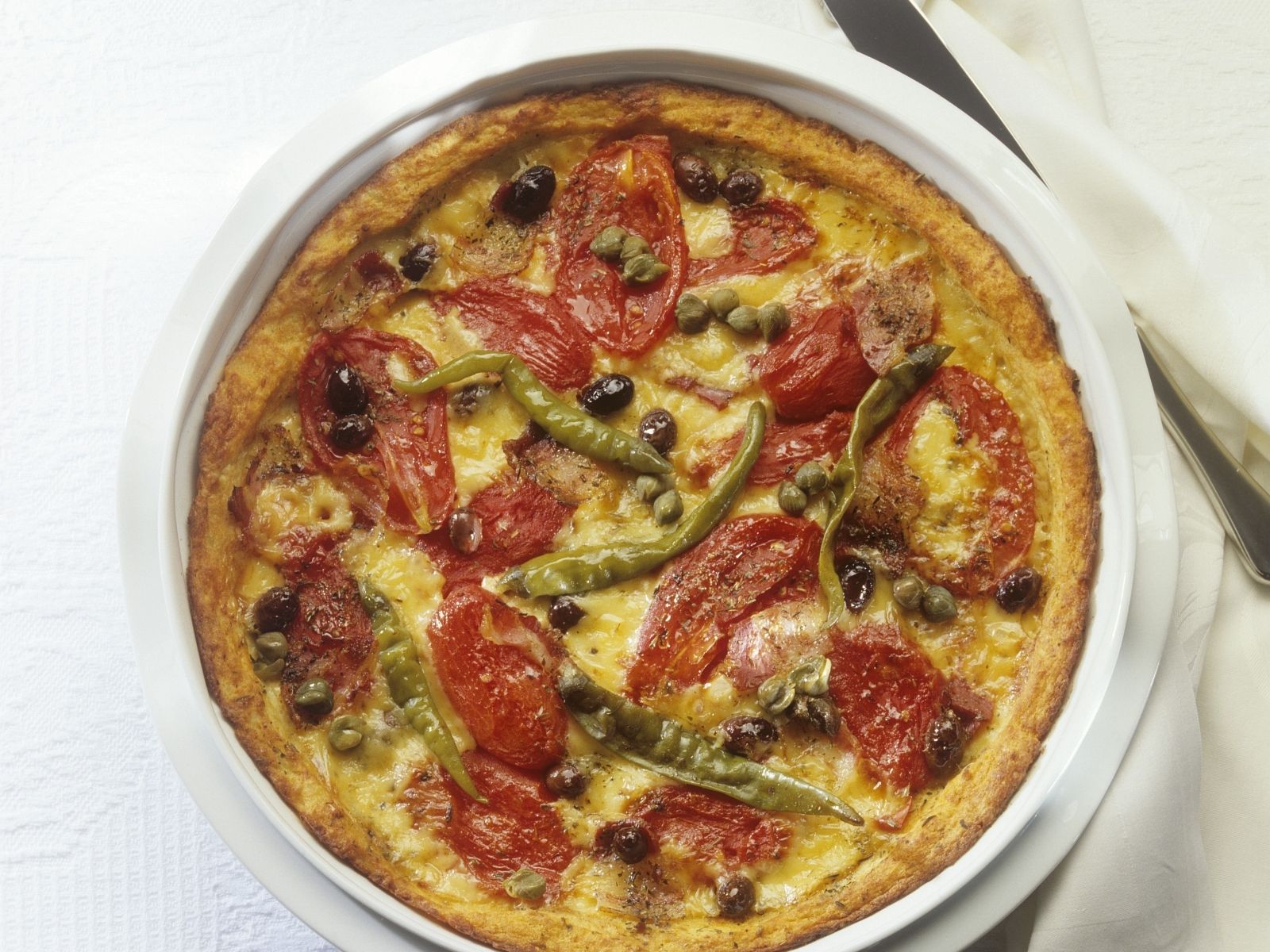 Vegetarische Quiche Mit Kartoffeln Oliven Tomate Und Kase Kalorienarm Und Einfach Kalorien Geniessen Rezept In Tomate Und Kase Vegetarische Quiche Quiche