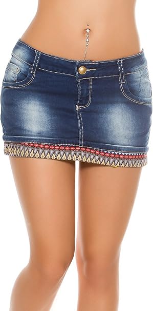 Damen Jeans Damen Rocke Minirock Jeans Rock Kurz Stretch Huftrock Sommerrock Strass Omnia Ae