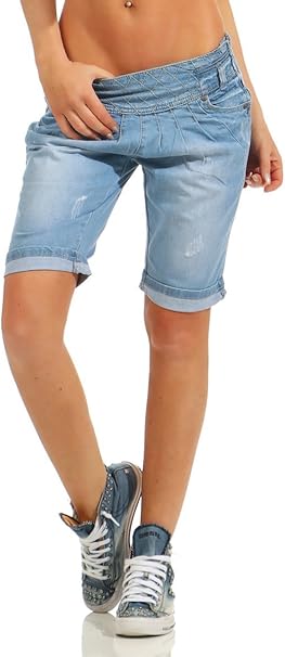 Fashion4young 109 Damen Jeans Bermuda Denim Shorts Kurze Hose Stretch Destroyed Baggy Bundfalten Blau S 36 Amazon De Bekleidung