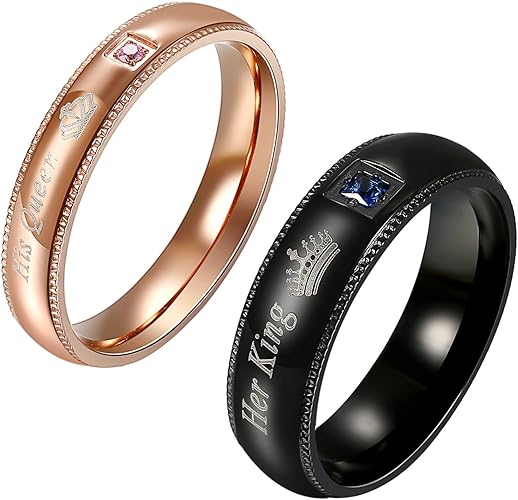 Flongo 2 Stuck Edelstahl Band Ring Partnerring His Queen Her King Krone Gravur Zirkonia Schwarz Rose Gold Valentine Valentinstag Lieben Paar Hochzeit Engagement Verlobungsringe Herren Damen Amazon De Schmuck