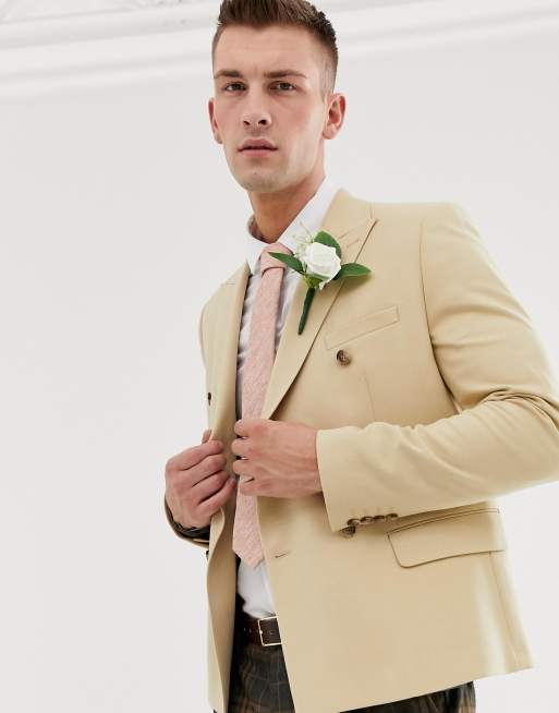 Asos Design Wedding Schmaler Zweireihiger Blazer In Kurzer Form Beige Asos