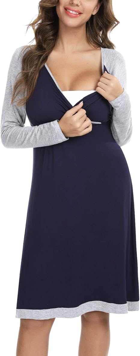 Damen 2in1 Umstands Langarm Gerafften Stillkleid Umstandsmode Mutterschaft Stillzeit Nursing Freizeit Kleid Layereddesign Wickeln Schicht Huhu3 Damen Still Kleid Umstandskleid Bekleidung Luxdental Si