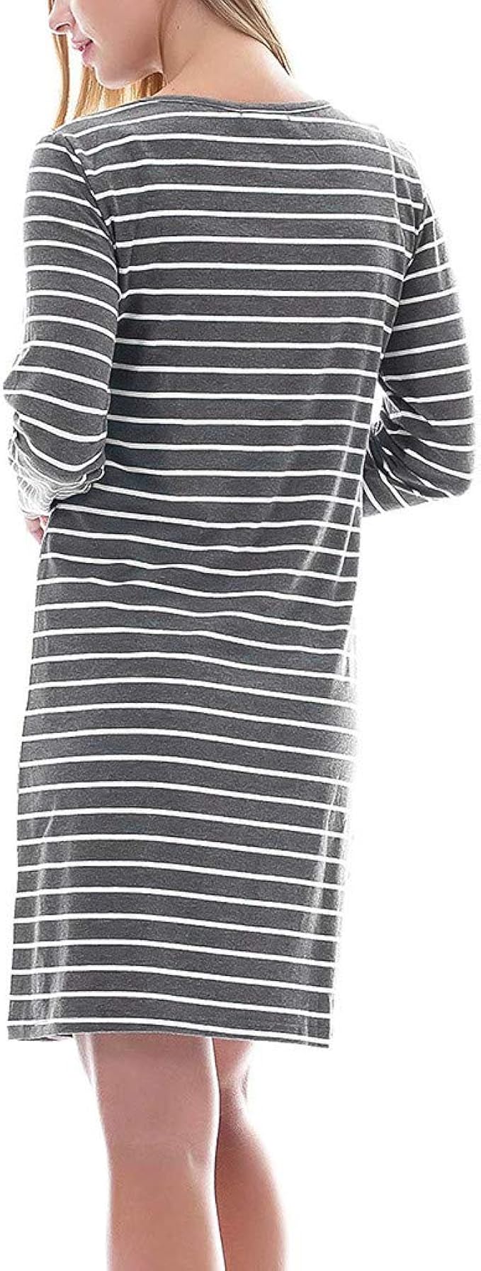Rosennie Damen Umstandskleidung Kleider Stillzeit Langarm Kleidung Stripes Mutterschaft Stillen Kleid Langarm Taste Pflege Nightie Gerafften Stillkleid Skaterkleid Schwangere Nachthemd Bekleidung B07g55dh65