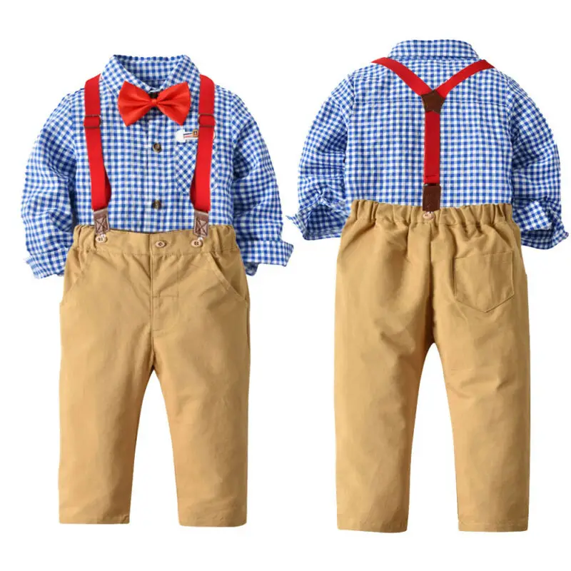 Babys Jungen Kinder Baby Kariert T Shirt Top Hemd Hose Mit Hosentrager Smoking Anzuge Kleidung Accessoires Comprapido It