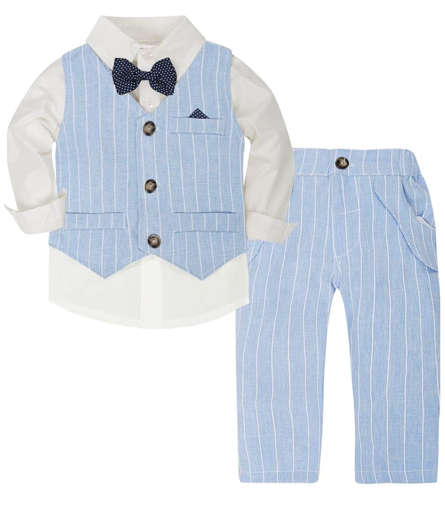 Hemd und hose jungen. Formale Baby jungen Anzug Gestreifte Oberteile Hemd mit langen Ärmeln und Hosen 2Pcs Gentleman Baumwolle – Verkauf von Artikeln zu günstigen Preisen im Katalog von Waren aus der ganzen Welt Gratisversand und große Auswahl. Baby Jungen Gentleman Outfits Hemd und Hose mit Weste Sets Weißes Hemd mit Revers und langem Ärmeln, Knopfverschluss vorne Weste mit zwei falschen Fronttaschen und Knöpfe vorne Hosen hat 2 Seitentaschen, knopfverschluss und Gummiband hinten Perfektes Geschenk für Festzug, Party, Hochzeit, Geburtstag und tägliche Abnutzung. Auch gibt es die Taufoveralls, die für den Täufling noch bequemer als Hose, Hemd und Weste zu tragen sind Beliebte Farben sind dabei Weiß, Beige und Hellblau Ältere Jungen entscheiden durchaus gerne mit bei der Kleidungswahl und sind bereits so weit, ihren wahrscheinlich ersten Anzug zu tragen.
