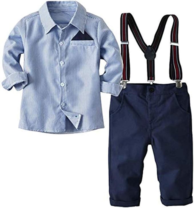 2 Teiliges Kleinkind Jungen Babyanzug Gentleman Kinder Langarm Hemd Hose Mit Trager Anzug Kleidung Set Amazon De Bekleidung