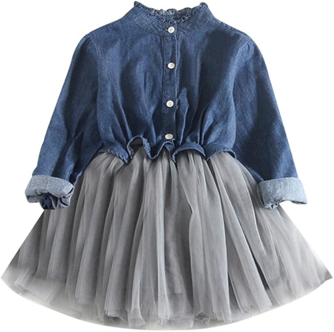 Hirolan Madchen Denim Kleid Kinderkleidung Madchenkleider Kleinkind Baby Lange Armel Prinzessin Tutu Kleid Cowboy Kleider Sommerkleid Spitze Babykleidung Schone Abendkleider Amazon De Bekleidung