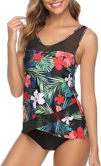 Aibrou Womens Tankini Swimsuits Set Two Piece Bathing Suit Mesh Ruffled Top With Bikini Bottoms At Amazon Women S Clothing Store