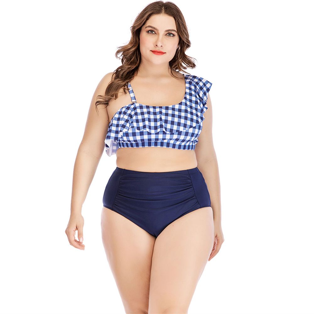 21 Womens Sexy Two Piece Swimsuit Grid One Shoulder Flounce Bathing Suit Plus Size Padded Bikini Tankini Top High Waisted Bikini Briefs Bottoms From Hikesports 17 Dhgate Com