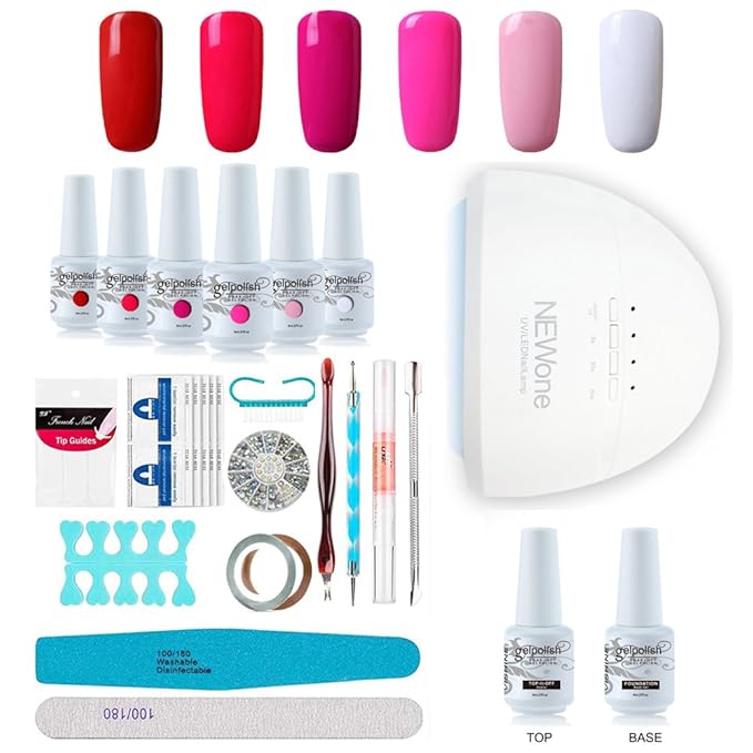 Amazon Com Gel Nail Polish Starter Kit Speed Curing 48w Professional Led Lamp Base Top Coat Set 6 Colors Manicure Tools Popular Nail Art Designs By Vishine 15 Beauty