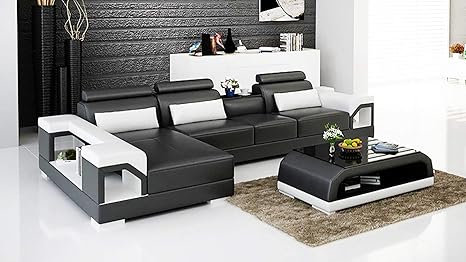 Its Me Sofa Fur Kleine Raume Designer Sofa Aus Echtem Leder Mit Sofakissen Und Verstellbaren Kopfstutzen G8010c Links Schwarz Amazon De Kuche Haushalt