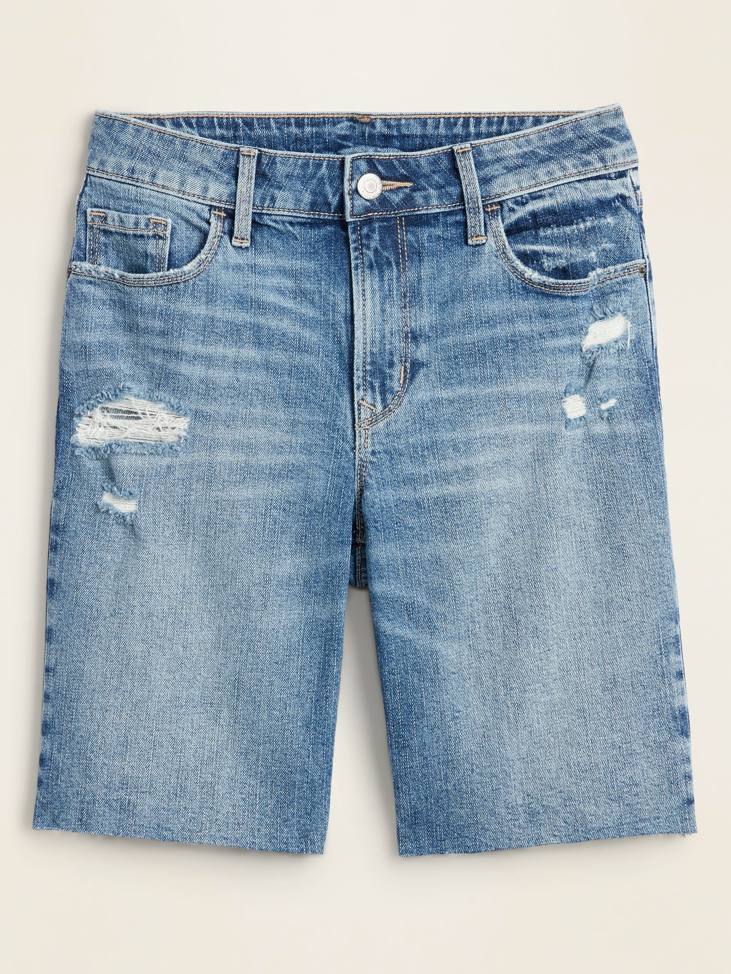 Mid Rise Distressed Bermuda Jean Shorts For Women 9 Inch Inseam Old Navy