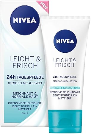 Nivea Leicht Frisch espflege 24h Feuchtigkeit 50 Ml Creme Gel Fur Normale Und Mischhaut Gesichtspflege Mit Naturlicher Aloe Vera Mineralien Antioxidans Amazon De Beauty