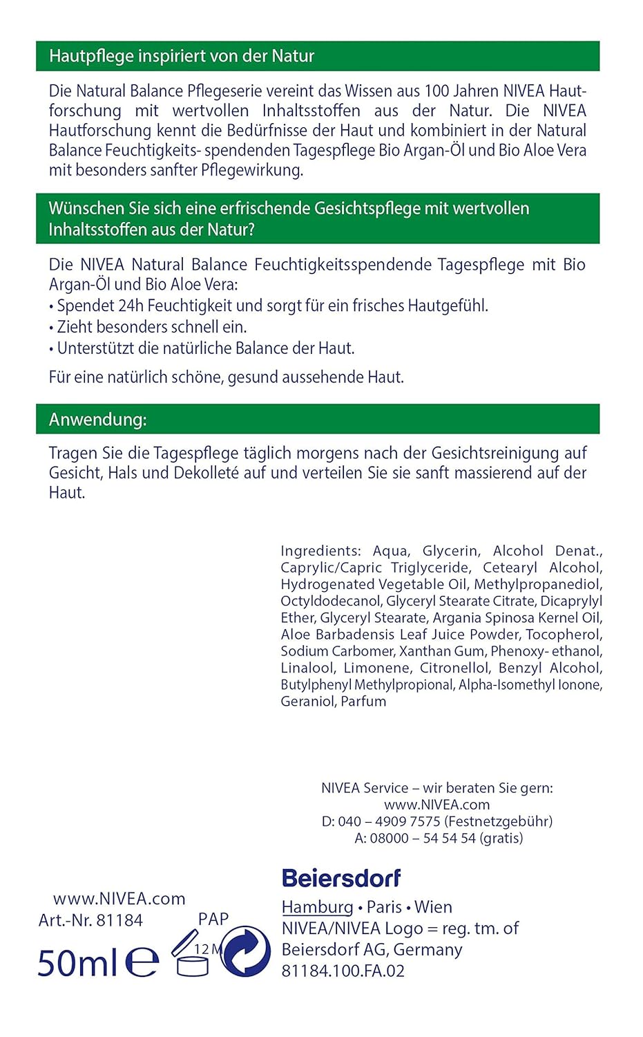 Nivea Natural Balance Feuchtigkeitsspendende espflege 50 Ml Feuchtigkeitscreme Mit Bio Aloe Vera Jojoba Und Mandelol escreme Fur Normale Und Mischhaut Amazon De Beauty