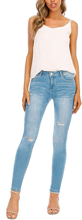 Wofupowga Womens Ripped Stretch Denim Skinny High Rise Totally Shaping Jeans Straight Pants Womens Jeans Skinny High Waisted Denim