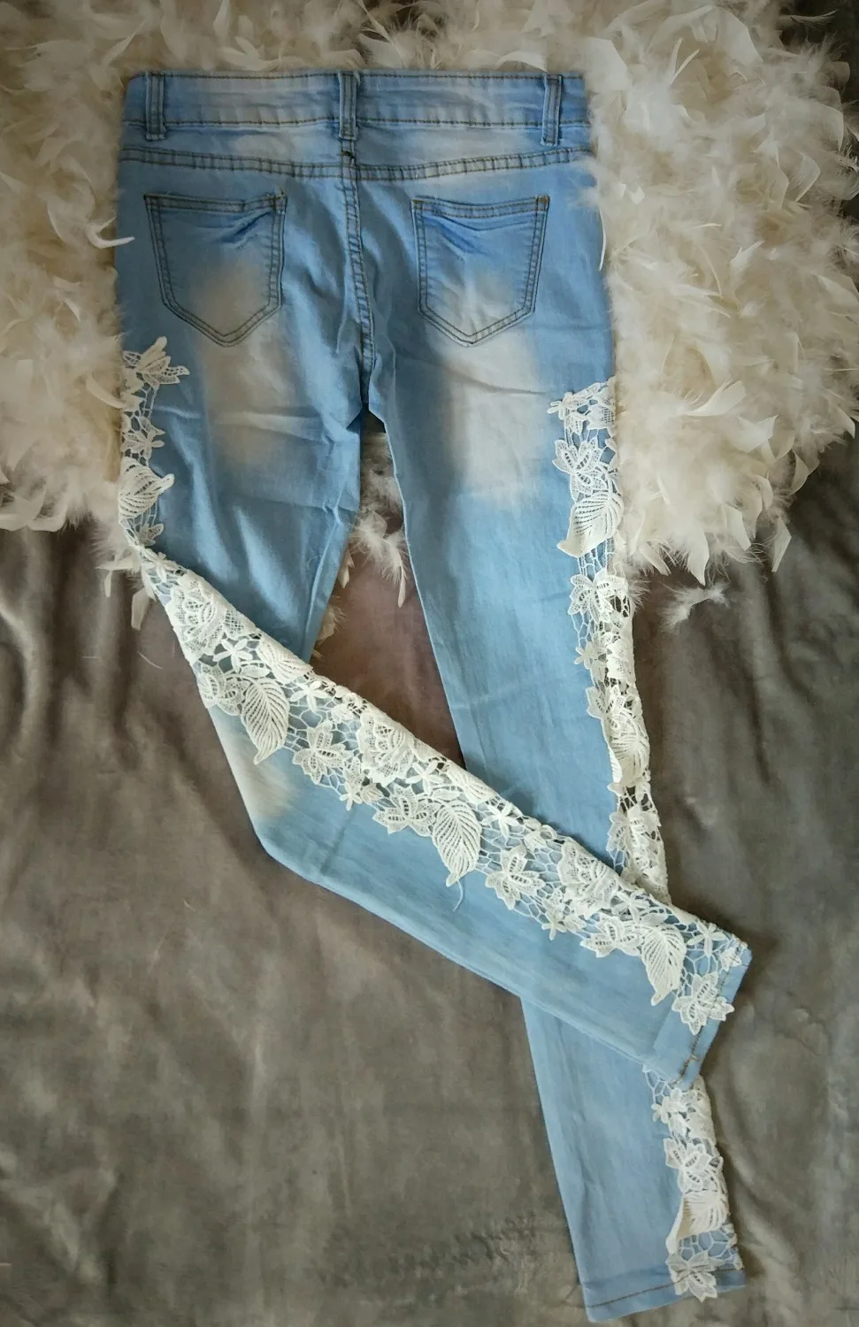 Eine Hose Mit Spitze Flicken Ohne Nadel Feiersun De Jeans Flicken Umgestaltete Kleidung Flicken