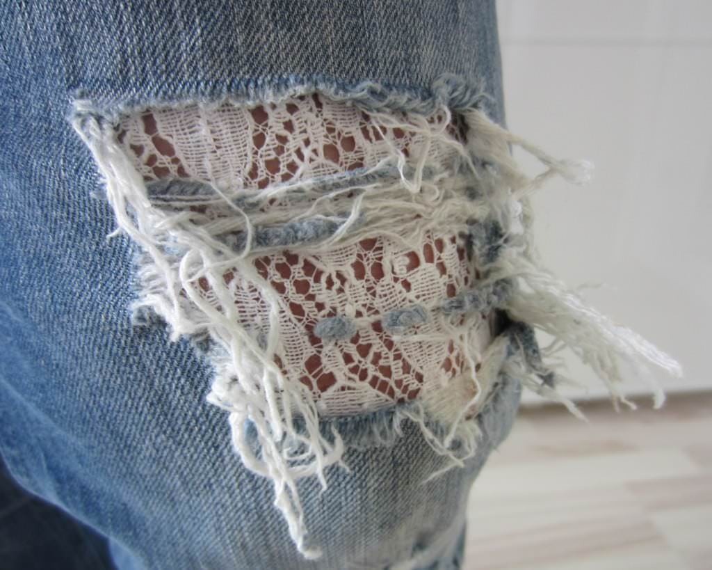0319 Die Lieblingjeans gerade noch vor der Tonne gerettet Mit einem Flicken aus Spitze. DIY Jeans mit Spitze flicken Dezember 13 Die Lieblingjeans gerade noch vor der Tonne gerettet Mit einem Flicken aus Spitze. Wir lieben Jeans in allen Farben und Formen und haben uns in den neusten Trend verguckt Jeans mit romantischen Stickereien, welche uns Flora und Fauna auf die Hose zaubern Unser neuer DenimLiebling besticht vor allem durch eine kunstvoll verzierte Beinpartie und versprüht sofort sommerliches Flair.