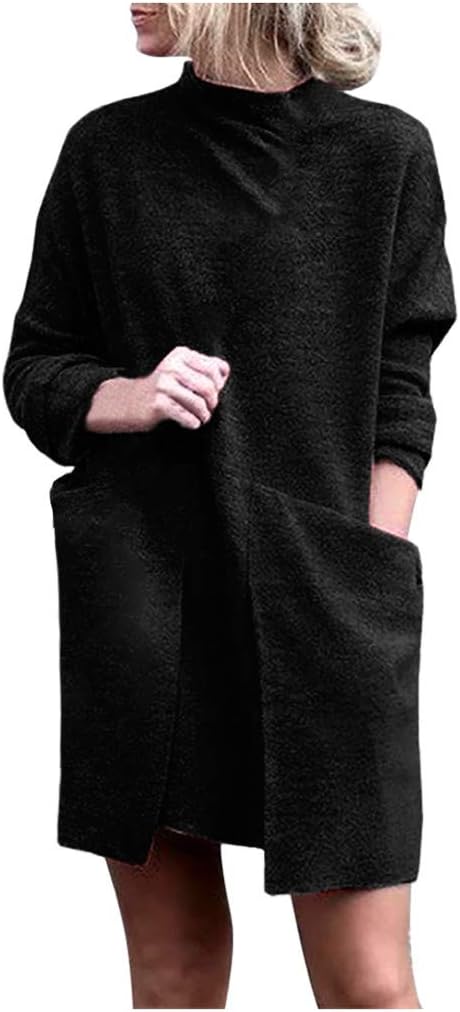 Damen Pullover Kleid Casual Hoher Kragen Elastisch Langarm Winterkleid Einfarbig Rollkragen Jumper Minikleid Kurze Kleider Modische Elegante Warme Strickkleid Wickelkleid Bekleidung Mastektomie Bhs