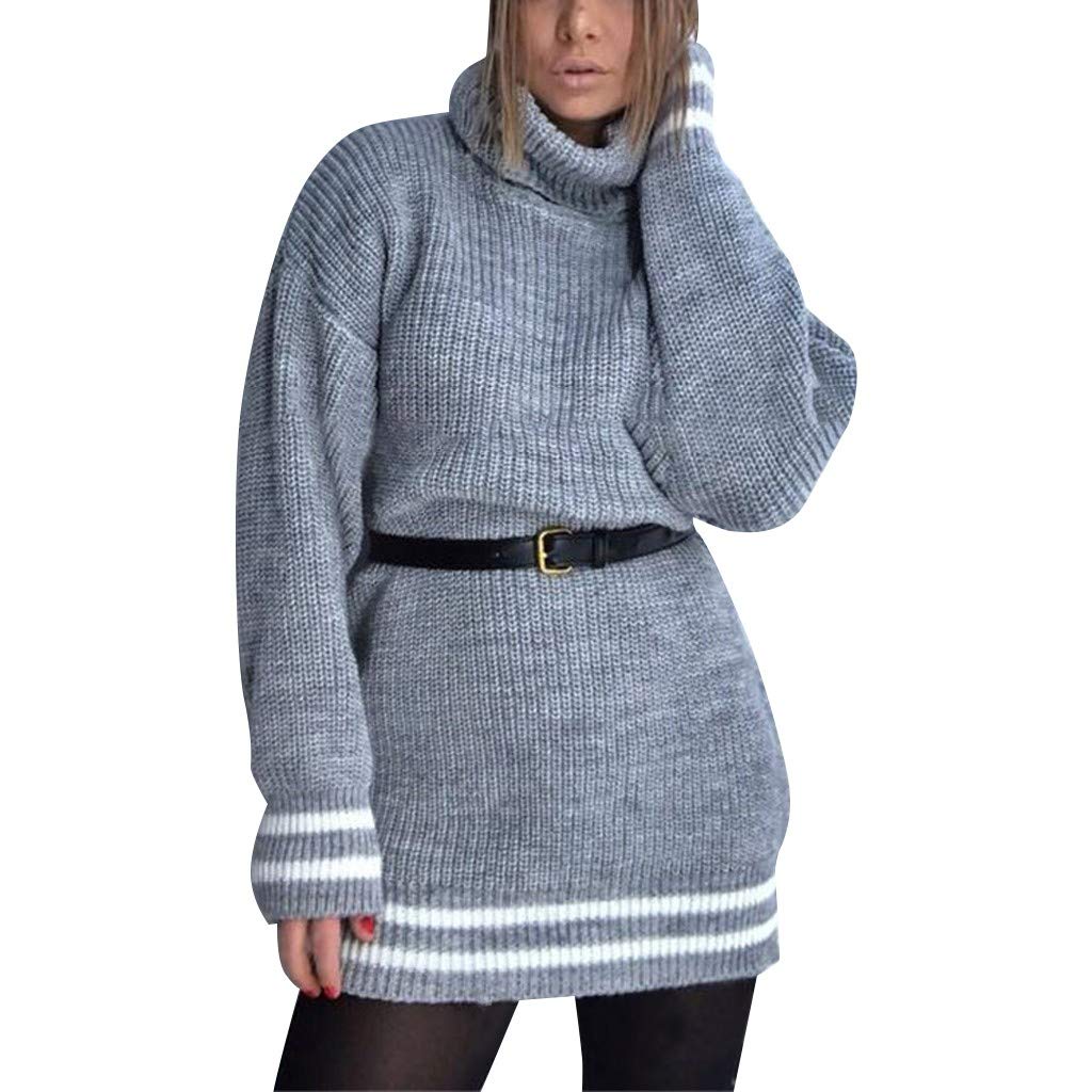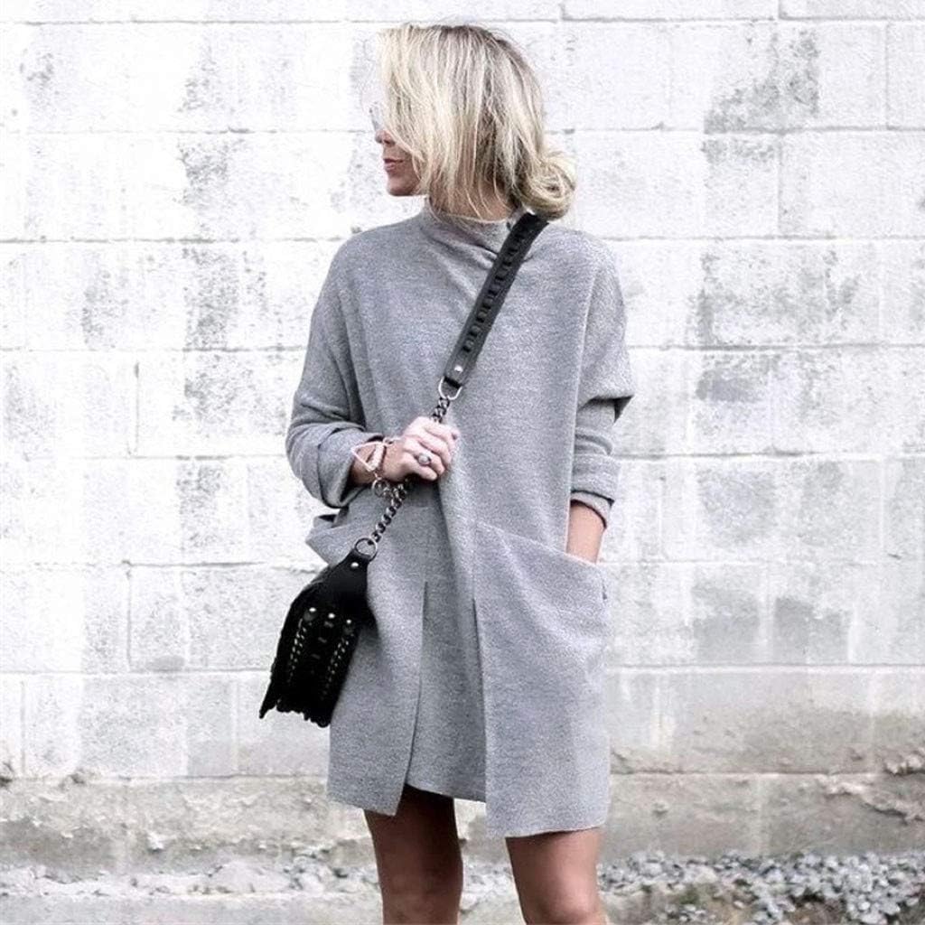 Unterwasche Dessous Damen Pullover Kleid Casual Hoher Kragen Elastisch Langarm Winterkleid Einfarbig Rollkragen Jumper Minikleid Kurze Kleider Modische Elegante Warme Strickkleid Wickelkleid Bekleidung Luxdental Si