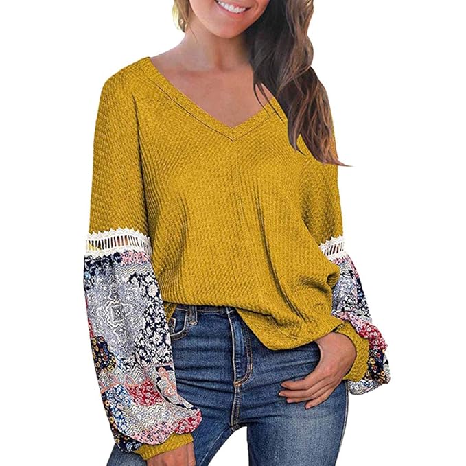 Sweatshirt Damen Vintage Elegante Blumendrucken Pulloverkleider Langarm Rundhals Mode Marken Loose Herbst Fashion Winterkleider Freizeit Jumper Pullover Streetwear Yogatini De