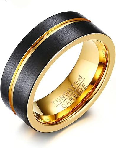 Daesar Herren Wolframkarbid Ringe Tungsten Schwarz Gold Ring 8mm Verlobungsring Trauringe Amazon De Schmuck