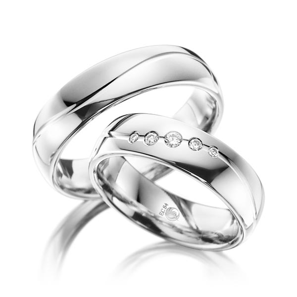 Eheringe Design 1637 Weissgold Trauringe Schmal Diamanten